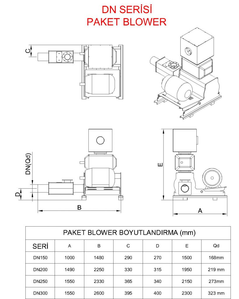 DN200 Paket Blower, yüksek hava debisi gerektiren sistemler için geliştirilmiş, güçlü ve dayanıklı bir endüstriyel hava çözümüdür.
